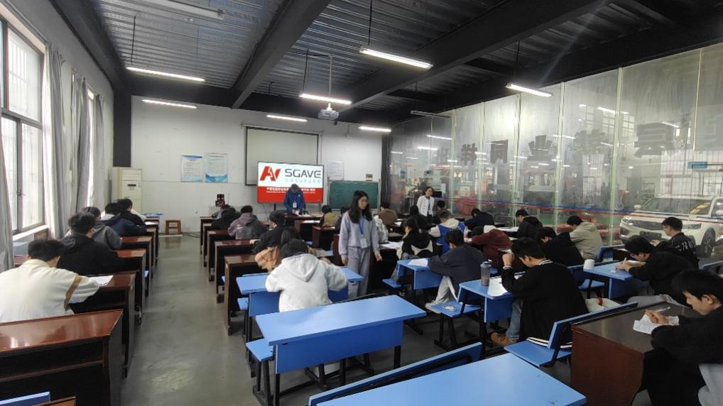 11 月 3 日上午,在笃实楼 109 开展理论考试,SGAVE 主考官与监考老师严格执行监考流程,保障考试严肃性。实操考核于 3 日至 4 日分时段开展,以真实工作场景为依托,通过 “任务驱动、工位轮转” 模式,让学生完成专项技能考核,综合检验其故障诊断、规范操作及解决问题的职业能力。30 名学生按序号分批次轮转考核,在各工位上沉着应对、规范操作,展现出扎实的专业功底和良好的职业素养。