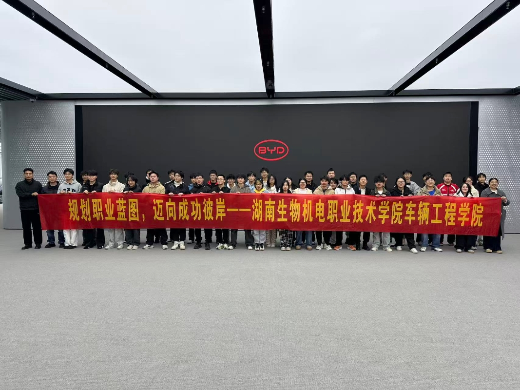 2025年12月16日,为深化产教融合,拓宽学生行业视野,车辆工程学院辅导员何杰,杨军带领新能源25301班全体学生,赴长沙比亚迪汽车股份有限公司开展职业认知实践活动,为学生搭建了零距离接触行业前沿的平台。