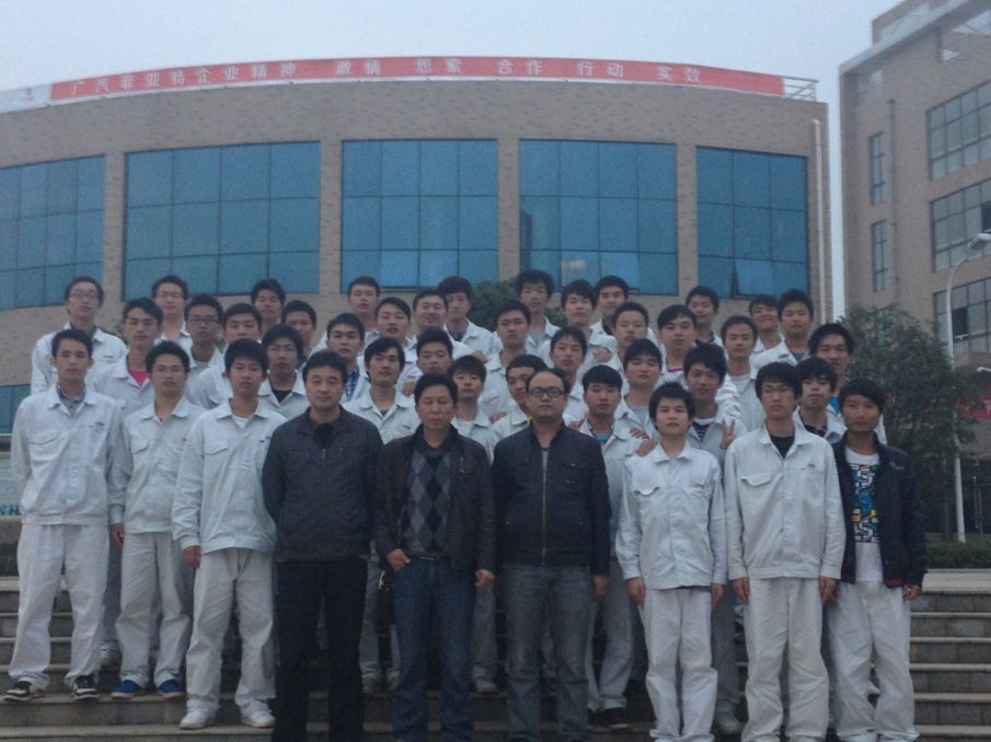 2012年11月4日下午,车辆工程学院院长杨培刚、副院长黄建科、副院长蒋端斌、就业专干张高俊一行4人前往广汽菲亚特员工培训基地看望2013届“广菲班”学员。学院领导一行受到了“广菲班”学员的热烈欢迎,通过与学员沟通了解,我院学生在基地培训期间表现突出,学生的综合素质、专业知识、吃苦耐劳的精神企业给予了高度评价,学生在培训基地组织的各项比赛中也取得很好的成绩。杨培刚院长详细询问同学们的培训和生活情况,听取了学生对实习就业和校企合作等方面的意见和建议,对学生在广汽菲亚特的培训学习情况有较为全面的了解。并对“广菲班”学员提出了三点期望和要求:一是要珍惜好难得的机会,给自己定好位,从基层做起,不断地提升自己的职业能力,为今后的发展打好基础;二是要遵守企业的规章制度,努力提高各自的岗位技能;三是作为第一期“广菲班”学员,要求同学们认真学习、认真工作,做出成绩为学院争光、为后续的校企合作奠定基础。随后,学院领导与学生进行了合影。