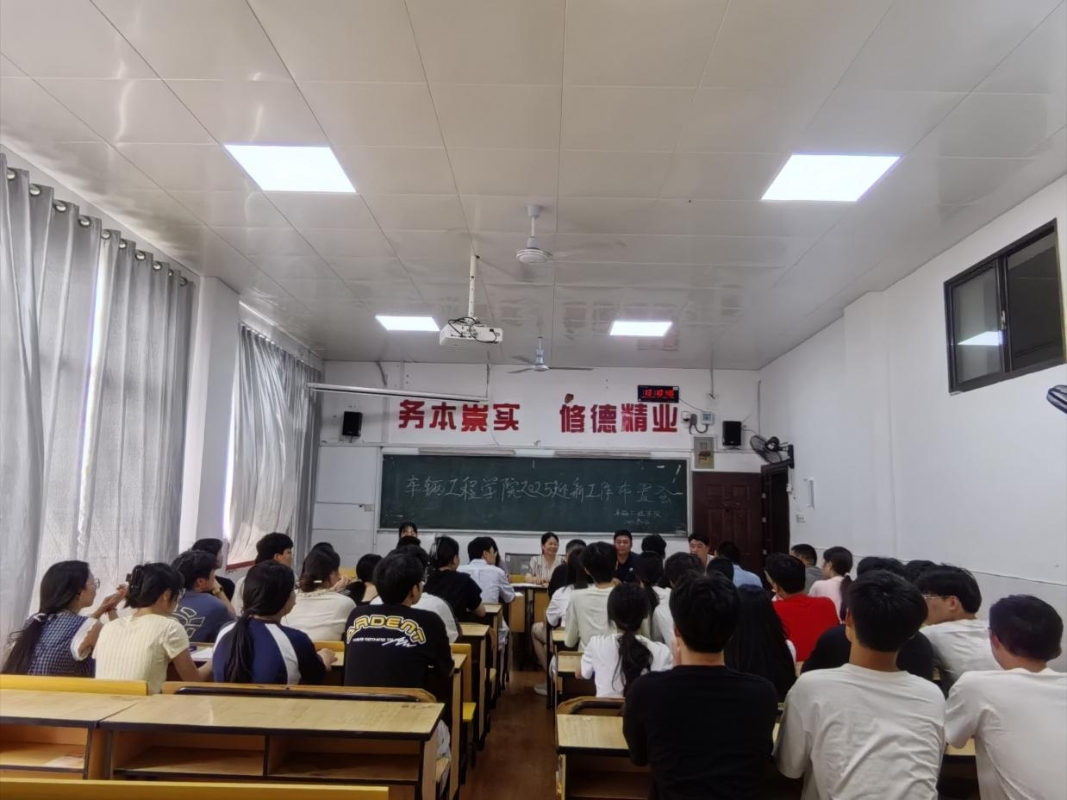 这份井然有序的背后,是前期周密的筹备部署。9月12日13:10,3教学楼3221教室内,组织召开了车辆工程学院2025年迎新工作布置会暨动员会。全体新生班主任、辅导员、助理班主任与志愿者共计44人按时到场。会上,党总支纪检委员、副院长左萃领学迎新工作纪律,明确专业介绍标准;党总支副书记杨林详细解读迎新方案,将报到引导、物资核验等流程责任到人;团总支书记赵璟源明确了助理班主任与志愿者职责;助理班主任代表卢丽雯代表全体助理班主任及志愿者表态,承诺全力做好服务保障。最后,党总支书记王建宇以"提高政治站位、坚守纪律和安全底线、细致服务、互助补位"四个方面号召全体迎新人员以最好的状态迎接新生。